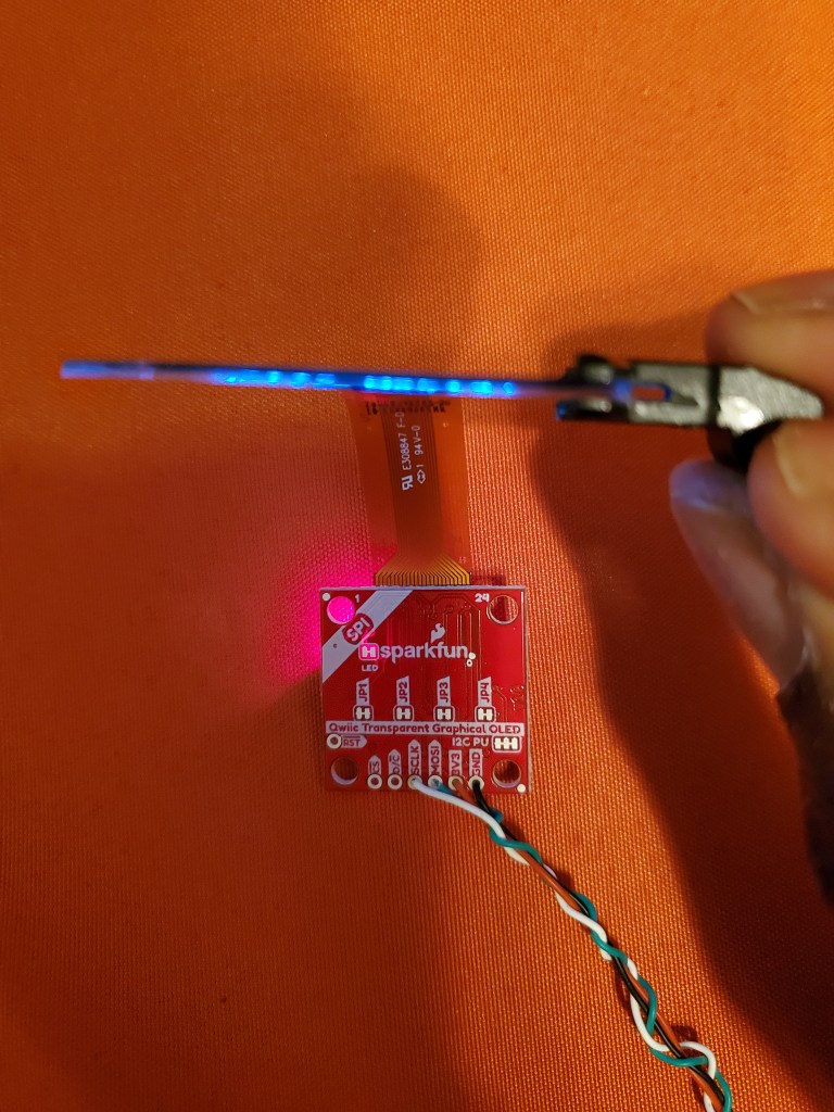 - Sparkfun Transparent OLED Display – https://www.sparkfun.com/products/15173