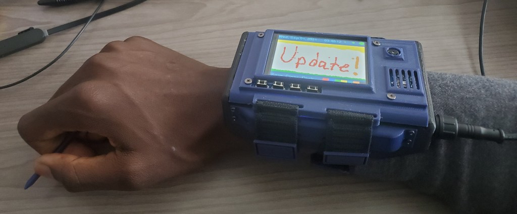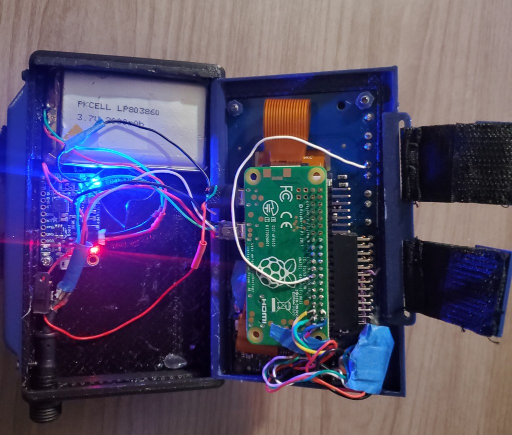 There is a music app that is in progress. When connected to my Pi 3B+, which is in a backpack, it sends play/pause, next/back commands to the ‘big’ Pi. I have an earbuds connected to this. Most older backpacks have that rubber covered opening for headphones. To finish, I will have the big Pi send playback data to the wearable device to display. This will be like the currents song, artist, etc.