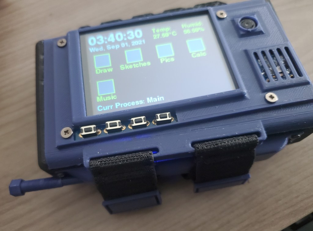 I didn’t plan on adding a stylus to the project, but I consistently used a pen cap tip to get fine touch readings when programming touch presses. I figured a simple stylus would be useful, especially once I wrote some apps like for drawing or a calculator that required more precise touch. The stylus’ back end has a threaded section that twists into place into the holder that is attached on the side of the device. The stylus holder also has the loops for the straps built-in.