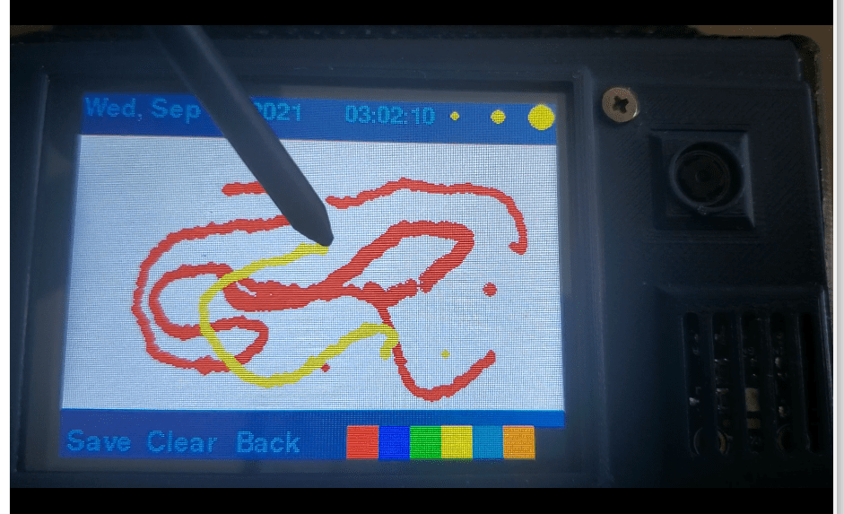 There were two applications that I wanted to have on the device just to make sure the touch screen was working properly. These were a drawing app and calculator. These took more time than I expected, and there are still some hiccups. The drawing app would draw a Pygame circle wherever a touch is sensed within the drawing space. This post provided a useful way to have the screen dimension match the touch dimensions and a refresh function.