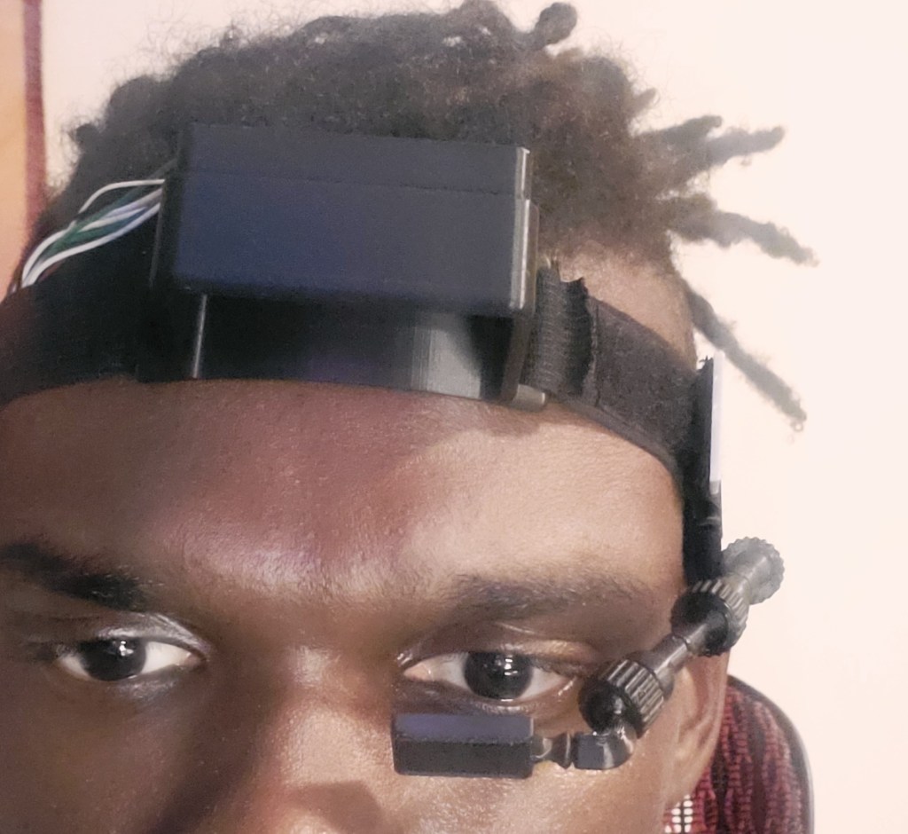 I saw a design that used a display perpendicular to the user’s forehead. With a mirror in front of the eye. Of course! Most wearable display designs I see use some configuration of magnification lens, mini projectors, or transparent displays. They do the job, but I thought the design I had seen at https://www.youtube.com/watch?v=f3AW8cRPy4o was a more simple build. Simple is better.